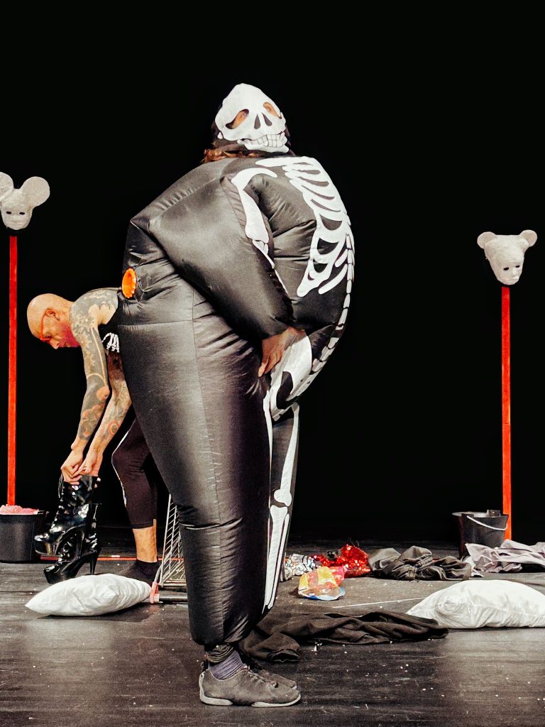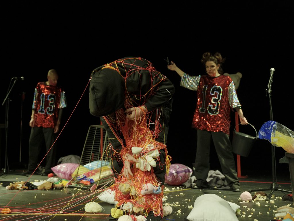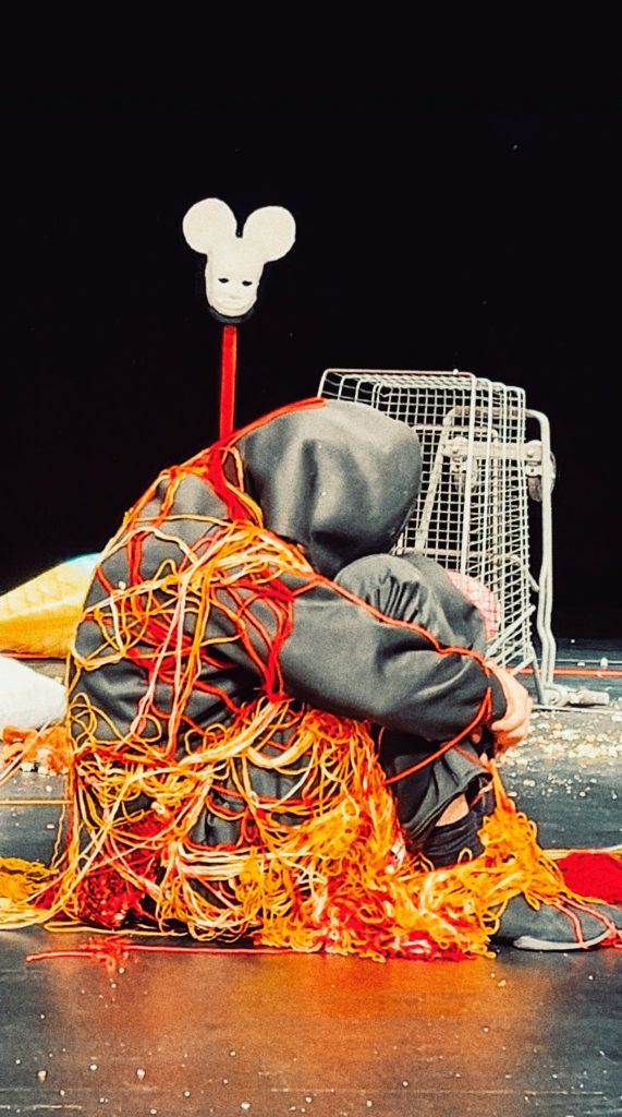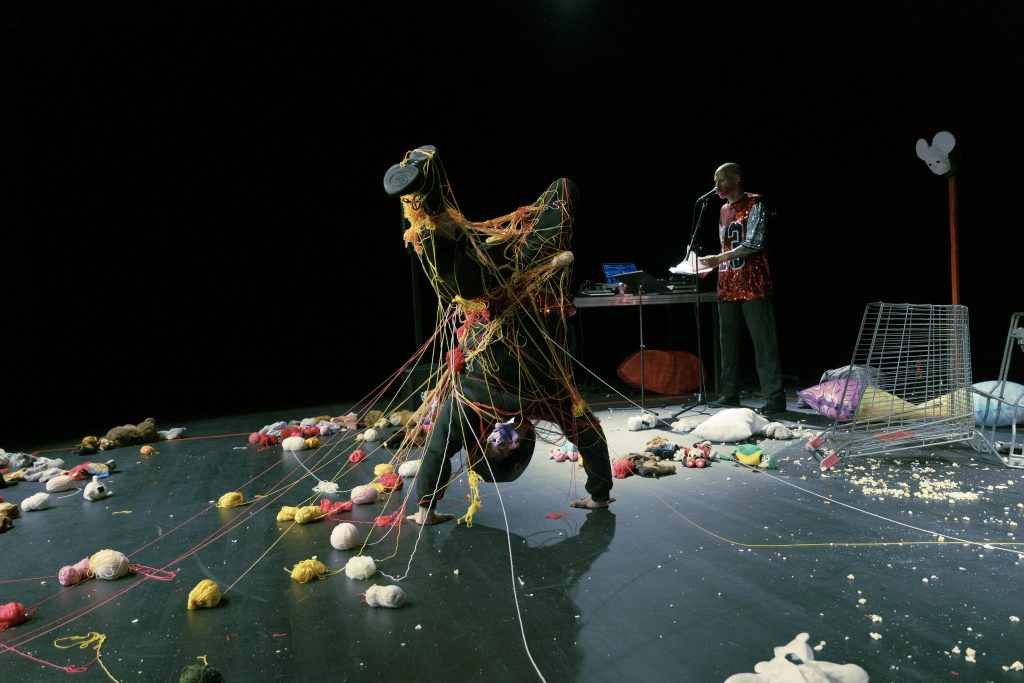 Le personnage principal Sidy ne parle pas, toutes ses pensées sont livrées au spectateur par une figure énigmatique qui est à la fois son âme ouverte et un narrateur/coryphée qui détient toutes les clefs de l’histoire. Son rôle est de redire les mots au spectateur encore et encore, les mots qui ne peuvent sortir de la bouche de Sidy. Bouche cousue est le monologue intérieur d’un personnage isolé du monde parce qu’en réaction au monde. Le travail pour ce conte noir tournera autour de la recherche des codes que génère la langue de l’auteur et les corps au plateau, le renforcement de l’espace poétique et la confrontation des mondes.