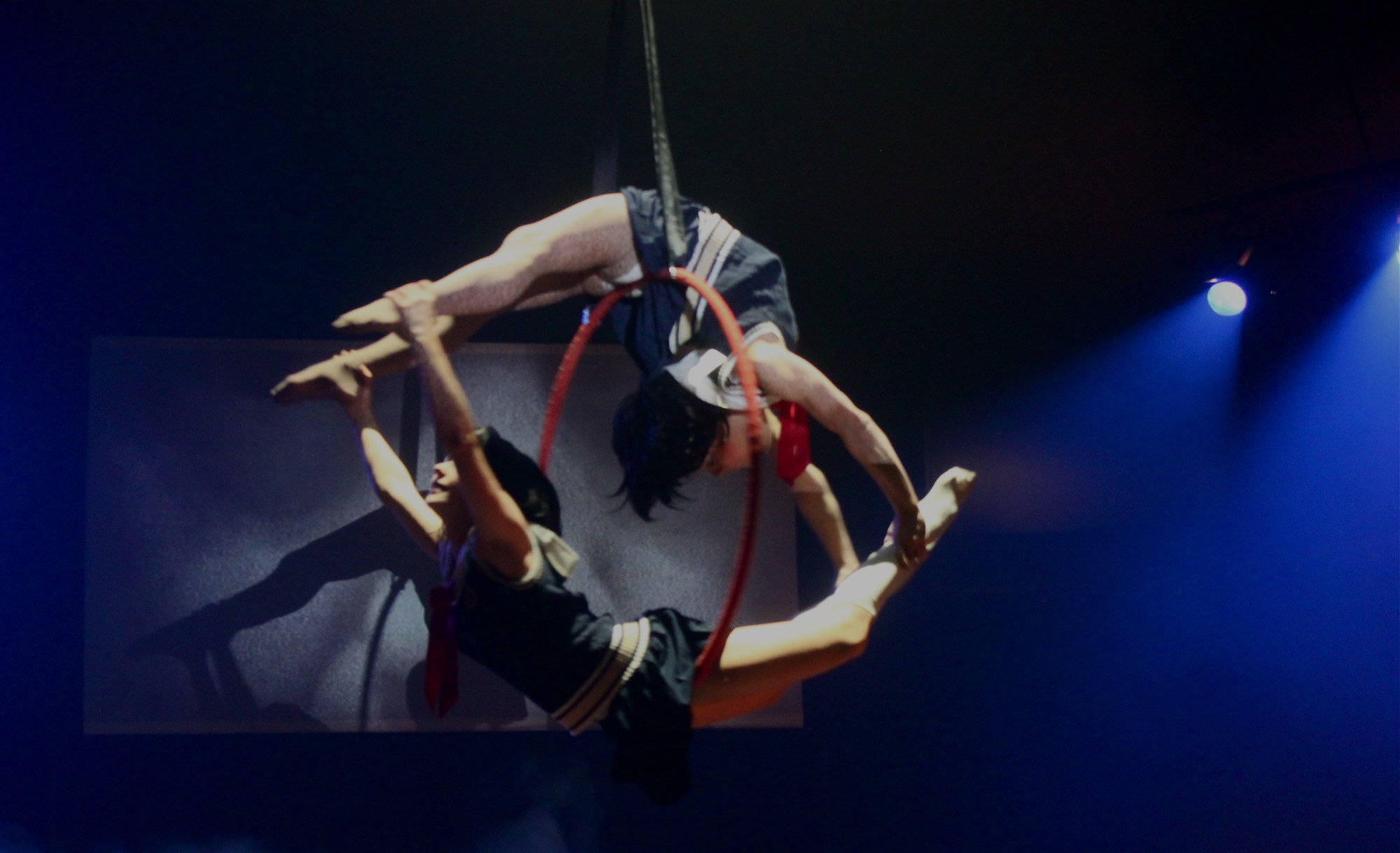 L’artiste de cirque dans son arène magique où tout est possible est la figure parfaite pour incarner ce monde bipolaire entre le réel de l’intime et le fantasme virtuel,le lieu où les super Hèros volent et disparaissent au dessus des spectateurs . Lieu de la monstration ,de la différence , du clown , du superbe , du monstrueux , de l’extrême, avant,quand on allait au cirque on y allait avec l’excitation de la magie et la petite boule au ventre de l’angoisse du train fantôme.C’est ce que nous aimerions retrouver avec ce « HENTAI CIRCUS » : un grand cabaret de curiosité, hybride nippon manga, mêlant différentes disciplines artistiques, circassiennes, textuelles et visuelles, sur musique « rock electro pixel » »