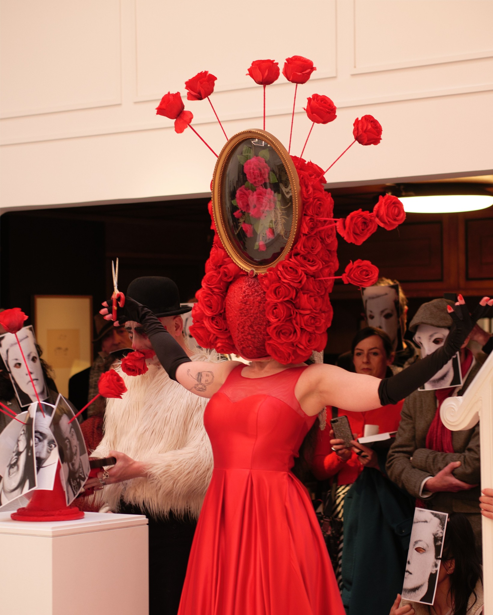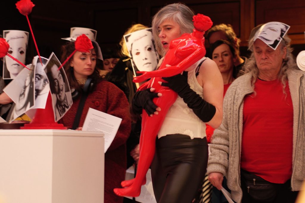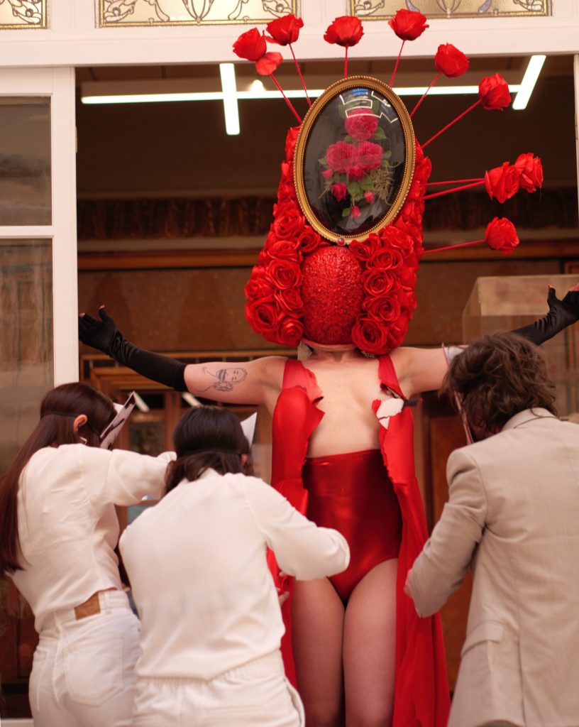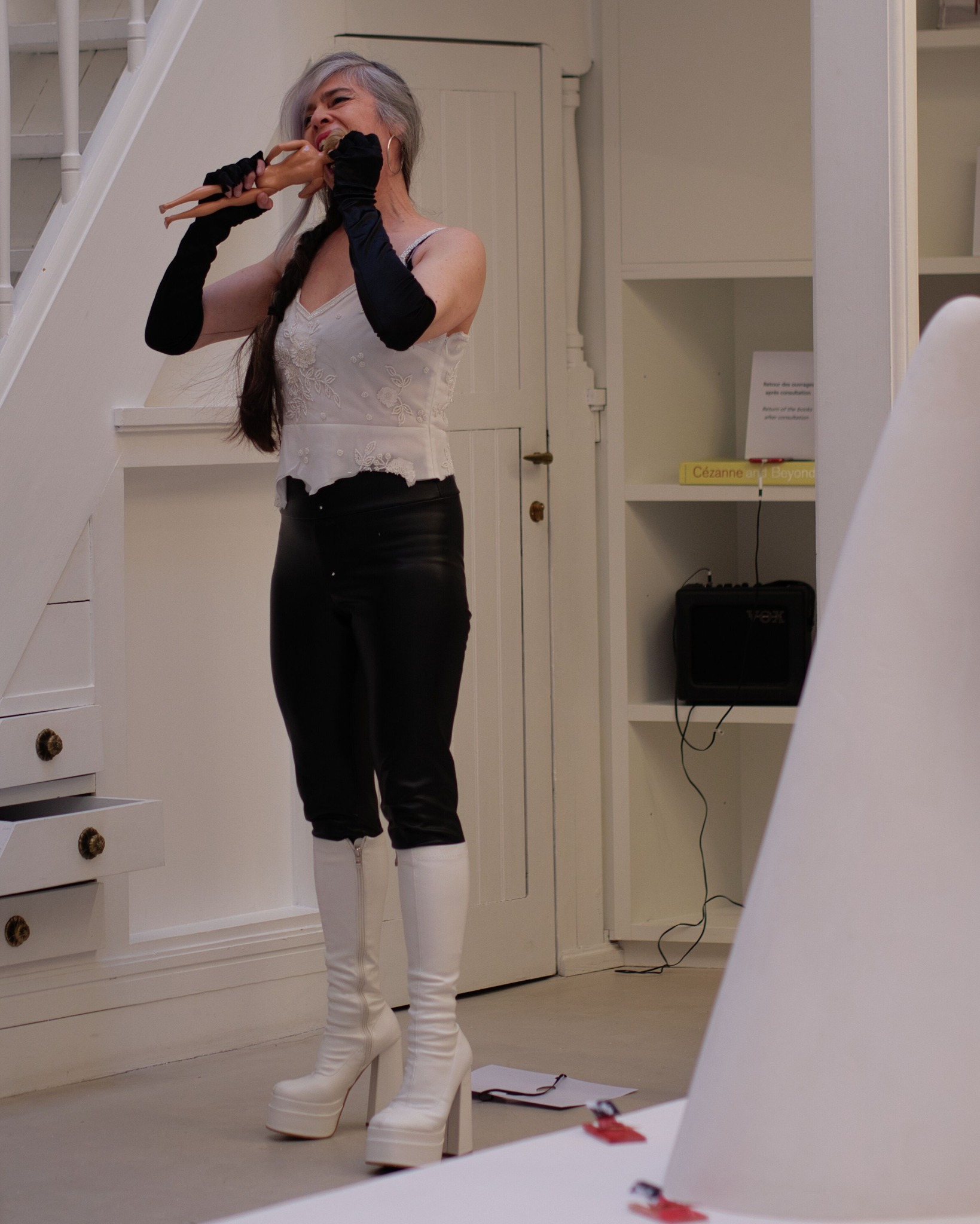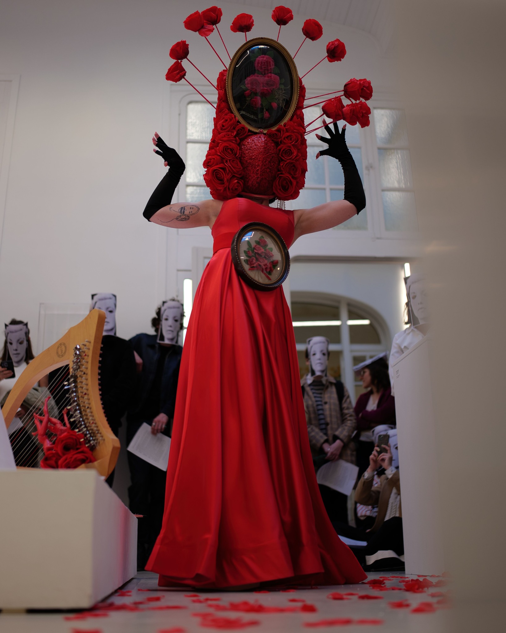 Se mêleront à ces moments, l’apparition de créatures en costumes et masques. Semblant les figures tutélaires du lieu. Elles vont dire le texte et le précipiter à mesure que la performance avance dans une scansion plus poétique pour finir sur la parole qui est toujours la première à entrer dans un bar et la dernière à en sortir. Ces fameux « bonjour, bonsoir » et entre les deux, on l’espère, le miracle.